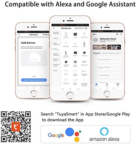 ☺ 【Controllo facile tramite Alexa / Google / Wifi】 Collegalo semplicemente al Wi-Fi (Tuya) e puoi controllarlo su e giù tramite la voce o l’APP sul tuo telefono.