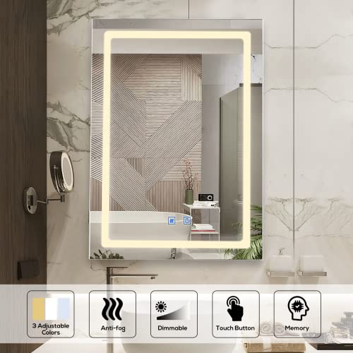 [LUMINOSITÀ DIMMERABILE] : Specchio da bagno retroilluminato con controllo full touch, toccare a lungo il pulsante per 2 secondi per cambiare la luminosità da normale a più luminosa. La temperatura del colore può passare da calda (3000K), naturale (4500K) e bianca (7000K) liberamente con un breve tocco. Questo specchio a led porterà un’esperienza migliore per il trucco, la cura della pelle, la rasatura e la vestizione.