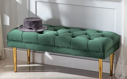 Wahson Panca Imbottita Fondo Letto Panchina Ingresso Moderna con Gambe Dorate, Panca Verde in Velluto per Camera da Letto/Interno