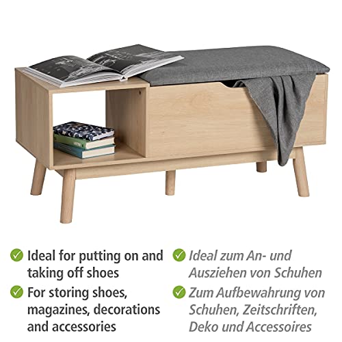 Contenuto della confezione: panca Edda con vano portaoggetti di WENKO, in MDF effetto rovere, rivestimento imbottito in poliestere, dimensioni (L x A x P): 100 x 45 x 40 cm, facile montaggio di panca, gambe e cassetto con viti in dotazione