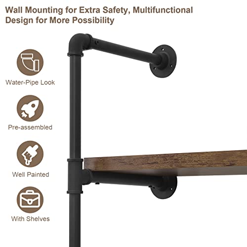 Il Tuo “Supporto”: I tubi in acciaio verniciati di nero sono robusti, antigraffio e sicuri, i pannelli in MDF sono robusti e durevoli. L’appendiabiti industriale si adatta facilmente a camera da letto, camerino, corridoio ecc.