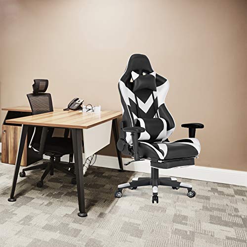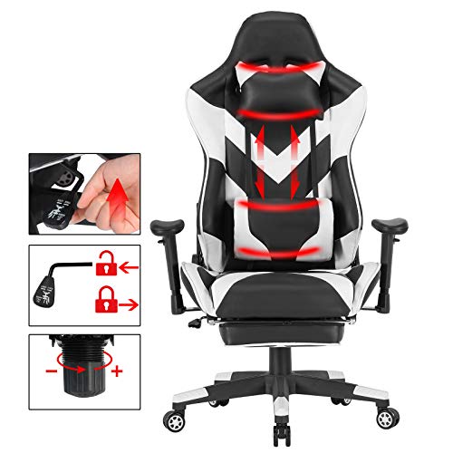 Rilassarsi: La seduta e lo schienale ben imbottiti, cuscino lombare aiuta a ridurre la pressione della colonna vertebrale di lombare. Sedia girevole con poggiatesta e poggiapiedi offre una seduta confortevole e soddisfa il lavoro quotidiano, le varie esigenze del gioco.