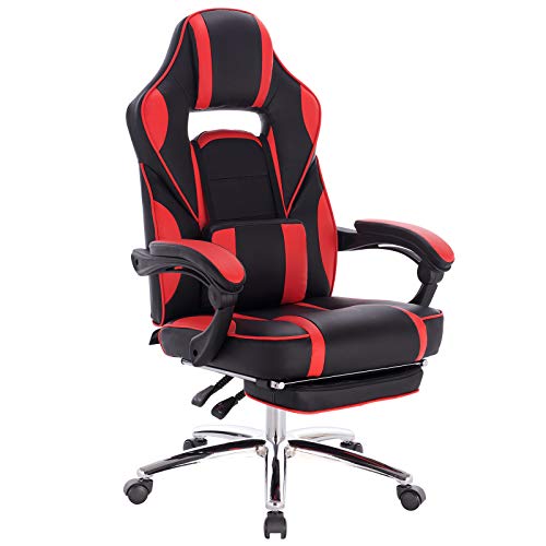 DESIGN ACCURATO: Con cuscino lombare comodo, braccioli coordinati e poggiapiedi estensibile, questa poltrona gaming confortevole e ergonomica è dotata di meccanismo basculante e schienale reclinabile (90-170°), offrendoti il massimo comfort e relax