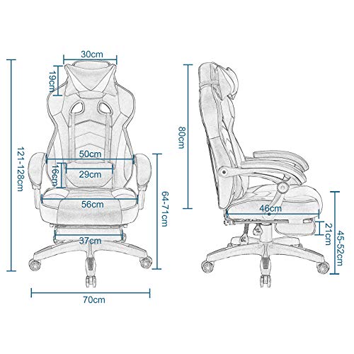 ERGONOMICA: La seduta e lo schienale ben imbottiti, cuscino di testa può alleviare la fatica e protegge la spina dorsale del collo durante il gioco o lavoro, e cuscino lombare aiuta a ridurre la pressione della colonna vertebrale di lombare. I braccioli con cuscini spessi sostengono le braccia e protegge i gomiti