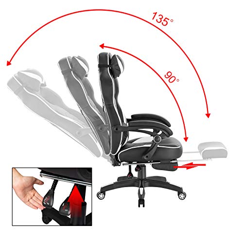 REGOLABILE: Sedia girevole e i suoi piedi di nylon con 5 ruote per muovere più flessibile, molto stabile; La reclinazione dello schienale raggiunge i 135°, la seduta regolabile in altezza e poggiapiedi retrattile. Ideale per sonnecchiare e dormire dopo aver lavorato