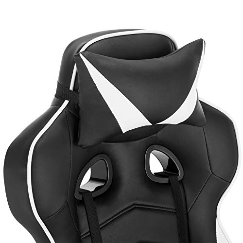 ERGONOMICA: La seduta e lo schienale ben imbottiti, cuscino di testa può alleviare la fatica e protegge la spina dorsale del collo durante il gioco o lavoro, e cuscino lombare aiuta a ridurre la pressione della colonna vertebrale di lombare. I braccioli con cuscini spessi sostengono le braccia e protegge i gomiti