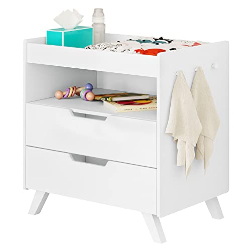 【Fasciatoio e cassettiera 2 in 1】: Questo mobile per bambini può essere sia un fasciatoio che una cassettiera con 2 cassetti e 1 scomparto aperto. È ideale per famiglie e asili piccoli