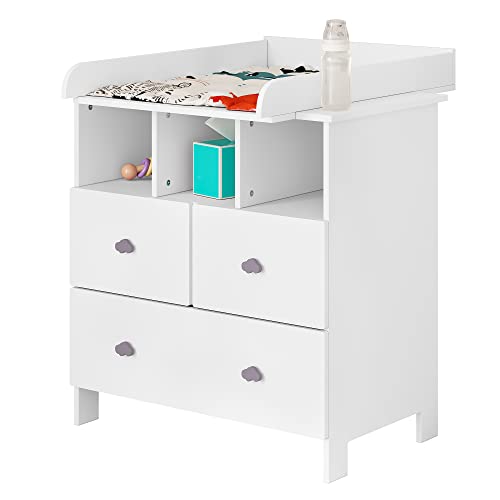 [Maggiore spazio portaoggetti] La cassettiera bianca è dotata di 3 cassetti e 3 scomparti a giorno. I cassetti proteggono articoli da polvere. I scomparti aperti tengono oggetti desiderati a portata di mano, come pannolini, salviette umidificate ecc.