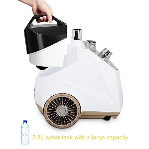 Serbatoio capiente rimovibile: Lo stiratore verticale è dotato di un serbatoio dell’acqua con una capacità di 3,8L che consente un’erogazione continua di vapore per circa 80 minuti. È semitrasparente e rimovibile in modo da poter controllare in qualsiasi momento il livello dell’acqua e riempirlo in tempo utile. L’impugnatura ergonomica facilita anche il montaggio e lo smontaggio