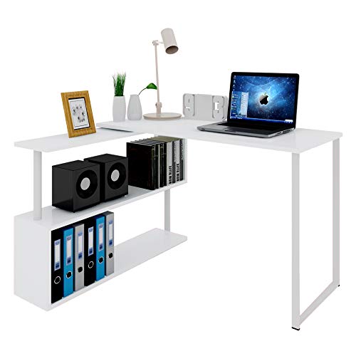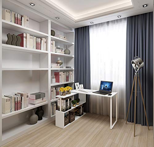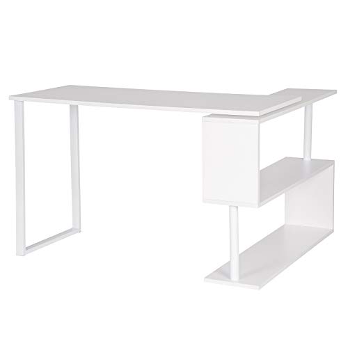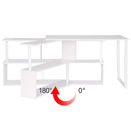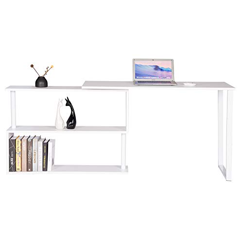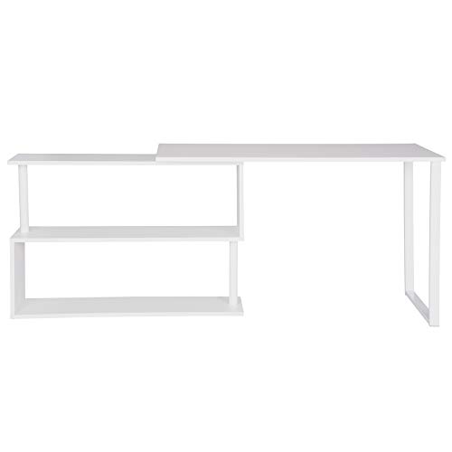 Salvaspazio–La scrivania può essere ruotata e regolata in base alle dimensione dello spazio; La libreria a 3 ripiani offre un grande spazio per computer, foto, libri, borse, e gli altri oggetti
