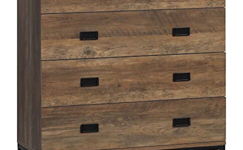 HOMCOM Cassettiera 4 Cassetti con Maniglie in Truciolato e Metallo per Soggiorno e Camera da Letto, 80x39x95 cm, Marrone