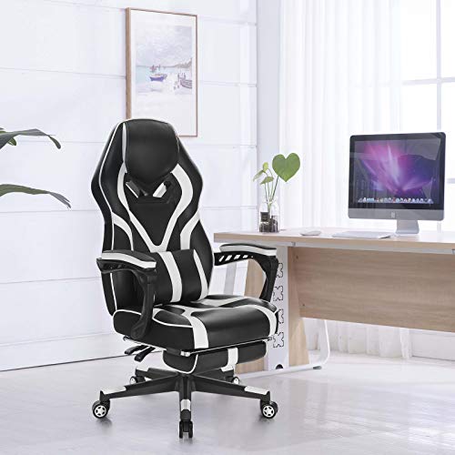 POLTRONA GAMING REGOLABILE: Per adattarsi meglio a persone di differente altezza e peso, la nostra sedia da gioco con poggiapiedi può essere regolata e reclinata a piacimento. L’altezza del sedile è regolabile tra 45-53cm, lo schienale è reclinabile tra 145°