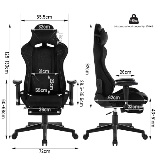 SPAZIOSA E FACILE DA ASSEMBLARE: Altezza totale- 125-133cm; altezza sedile- 43-51cm; altezza schienale- 92cm; dimensioni sedile- 52x62cm (LxP). Includiamo istruzioni di montaggio e parti numerate per un montaggio rapido di questa sedia per pc