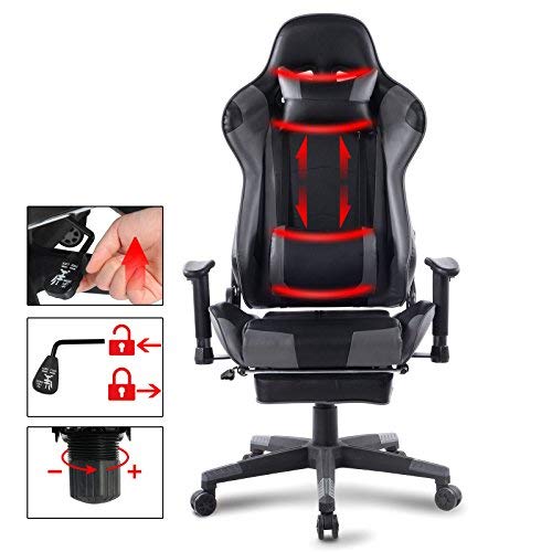 Ergonomica: La seduta e lo schienale ben imbottiti, cuscino di testa può alleviare la fatica e protegge la spina dorsale del collo durante il gioco o lavoro, e cuscino lombare aiuta a ridurre la pressione della colonna vertebrale di lombare