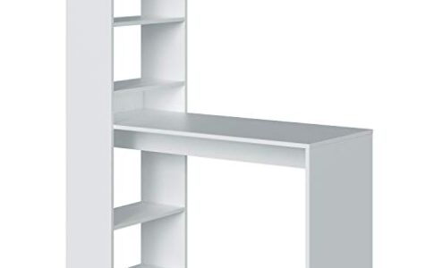 Abitti Tavolo da PC o scrivania con libreria Reversibile in Bianco Alpi, 144 x 120 x 52 cm