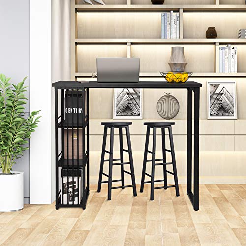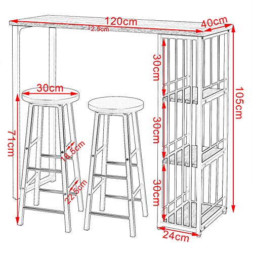 ♥DIMENSIONI♥- Sgabello-30x30x71 cm; Tavolo-120x40x105 cm; Tavolo è dotato di 3 scomparti per organizzare gli oggetti, sgabello è dotato di poggiapiedi incorporati in due altezze diverse; Arredo bar stile moderno e semplice; Carico: ca 150 kg