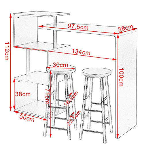 ♥DIMENSIONI♥- Sgabello-30x30x71 cm; Tavolo-134x38x112 cm; Tavolo con mensola a 4 ripiani per organizzare gli oggetti, sgabello è dotato di poggiapiedi incorporati in due altezze diverse; Arredo bar stile moderno e semplice; Carico: ca 100 kg