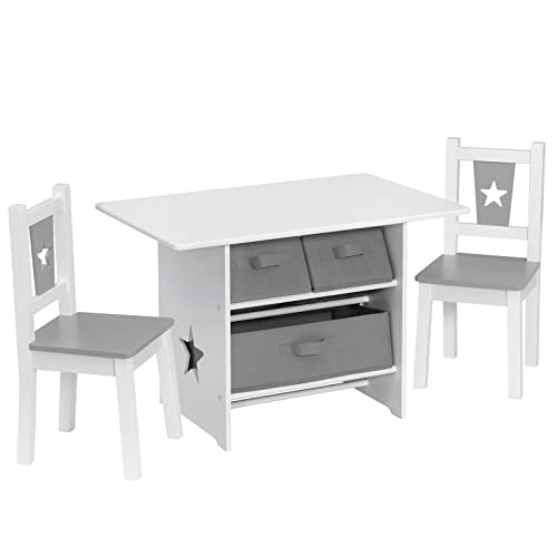 Tavolino da gioco multiuso: Il set di tavolo e sedie per bambini presenta uno simpatico design con stelline ed è ideale per giocare insieme agli amici, per disegnare, fare merenda, ecc. ed è anche perfetto per fare un picnic in giardino. Non solo adatto in casa, ma anche all’asilo