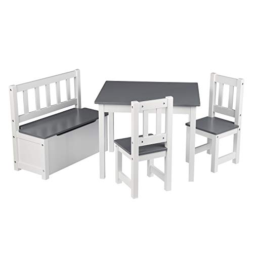 Tavolino da gioco multiuso: Ideale come set tavolo da pranzo e sedie per bambini o tavolo da gioco con sgabello e panca; può anche essere utilizzato per leggere, disegnare, fare merenda o fare picnic in giardino. Il tavolo, le 2 sedie e la panca contenitore possono anche essere utilizzati separatamente. Questo set è perfetto in casa, ma anche all’asilo