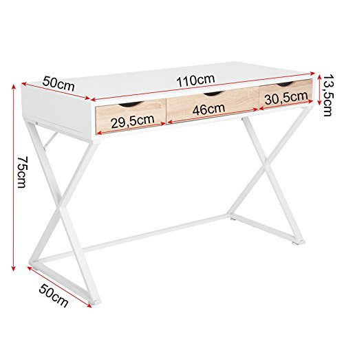 Materiale–Il piano del tavolo e 3 cassetti in legno, il solido telaio in acciaio verniciato bianco, buona vernice, superficie levigata, non ha un odore particolare.