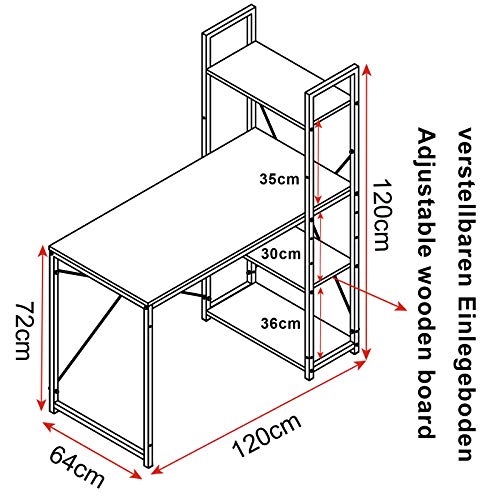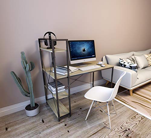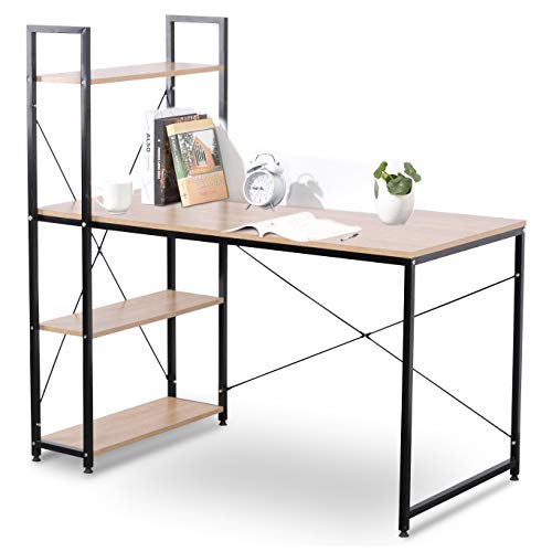 Salvaspazio: Il tavolo con libreria a 4 ripiani offre un grande spazio per computer, libri, foto, borse, vaso, scatola, scarpe, ecc