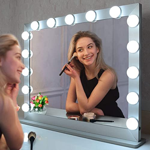 ★ Specchio per Trucco con Luci Grande:dimensione del prodotto: 70*55.2*10cm; dimensione del vetro:59*45*0.3cm. Struttura in alluminio e base in legno per una maggiore durata. Gli specchio per trucco ad alta definizione ti regalano il piacere del trucco professionale