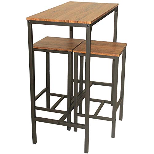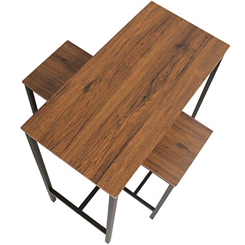 MATERIALE: Piani in pressato rivestiti di PVC spessore 1,5 cm. Struttura tubolare 2×2 e 2,5×2,5 cm in metallo colore Marrone Scuro. Piedini in plastica. Utilizzo domestico. Sono da interno. Portata tavolo 40 kg. Portata sgabello 100 kg.