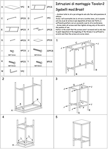 MONTAGGIO: Vengono spediti imballati con le istruzioni per il montaggio. In fase di montaggio, prima avvitare tutte le viti e poi stringerle alla fine nella posizione di utilizzo.