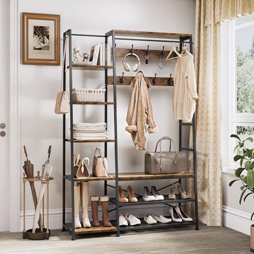 Ripiani multifunzionali: 9 ganci in 2 file sono ottimi per appendere cappelli, cappotti, borse e altri oggetti necessari, mentre l’asta appendiabiti anteriore mantiene i tuoi vestiti disordinati ben organizzati; La panca per scarpe estesa con ripiani in rete a 2 strati ti consente di togliere comodamente le scarpe e riporle; Il ripiano laterale a 5 livelli può essere posizionato in modo flessibile a sinistra o a destra per soddisfare le vostre esigenze