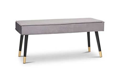 LIFA LIVING Panca per Interni, Panca in Legno e Velluto per appoggiare Vestiti e Scarpe, Ottomana Imbottita per Camera da Letto e Soggiorno, per 2 Persone (Grigio)